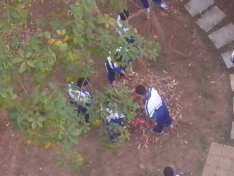 学生们干的热火朝天,有清理杂草的,有打扫花带的。齐心协力为校园的清新整洁而忙碌着。