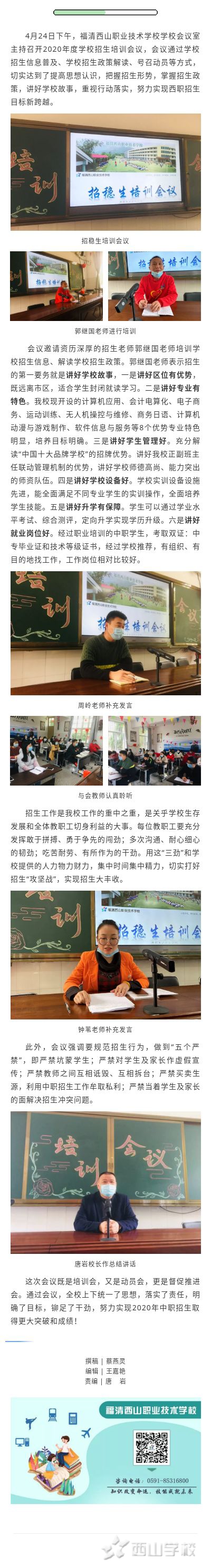 西职动态 | 福清西山职业技术学校召开2020年度招稳生培训会议